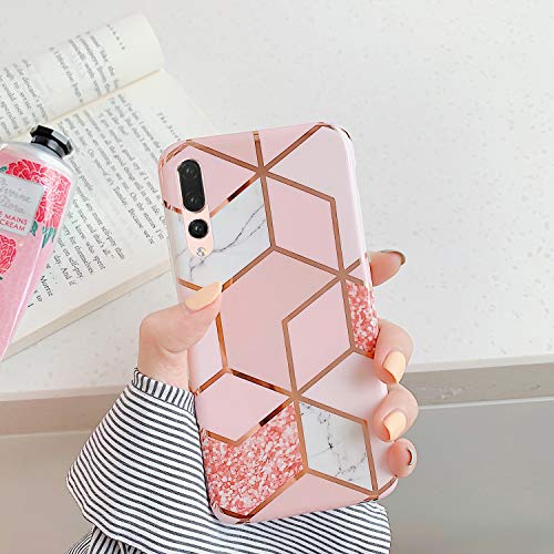 Phezen Case For Huawei P20 Pro Case Girls Women Imd Geometric Marble Pattern Imd Glossy Shockproof