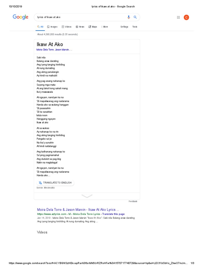 For the purchase of songs please purchase through a valid streaming media site or any other channel authorized by law and proper channel. Filipina singer moira dela torre has undeniably caught the spotlight of the music industry with her heart melting songs. Ikaw at ako lyrics. Disclaimer i do not own the song.