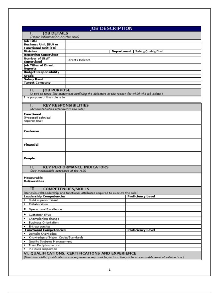 Job Description Template Format Template Job Description Template Job Description Job