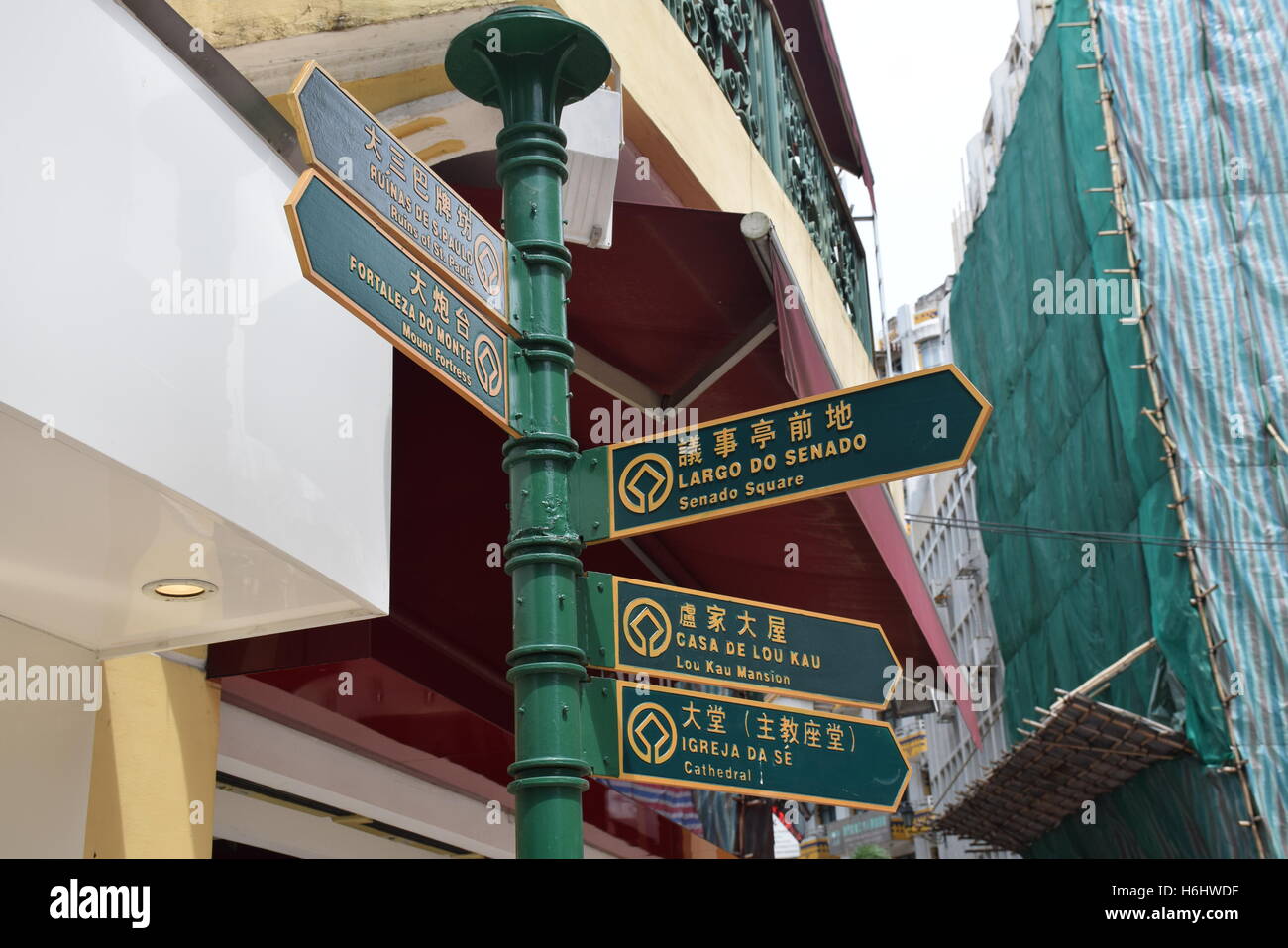 Street Signs In Chinese English And Portuguese On The Streets Of Stock Photo Alamy