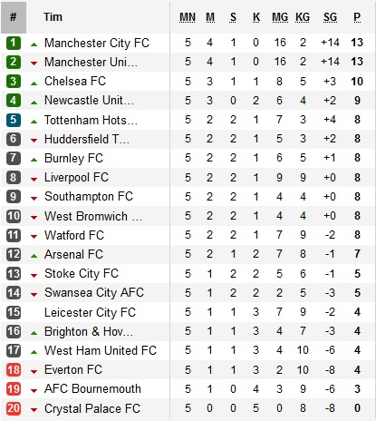 Klasemen Liga Inggris 2018 Terbaru Hari Ini