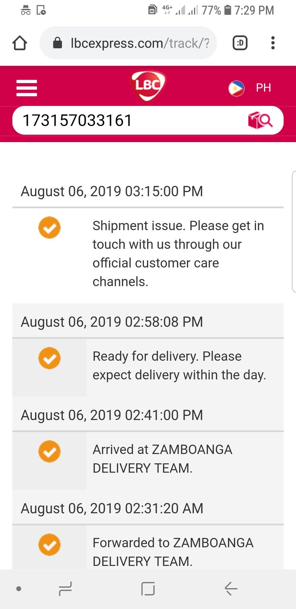 Teamanimo On Twitter Lbcexpress Tracking 173157033161 Status Says Shipment Issue Pls Advise
