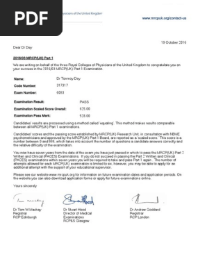Mrcp Exam Result Test Assessment Health Sciences