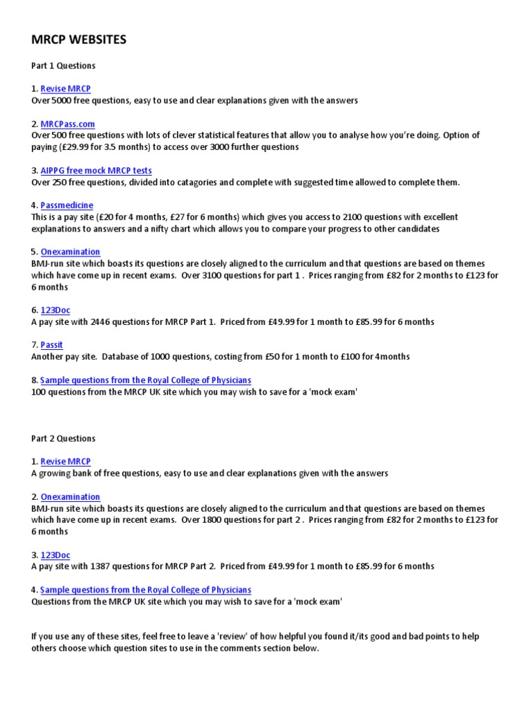 Mrcp Part 2 Questions 2021 Preparation Pass Mrcp