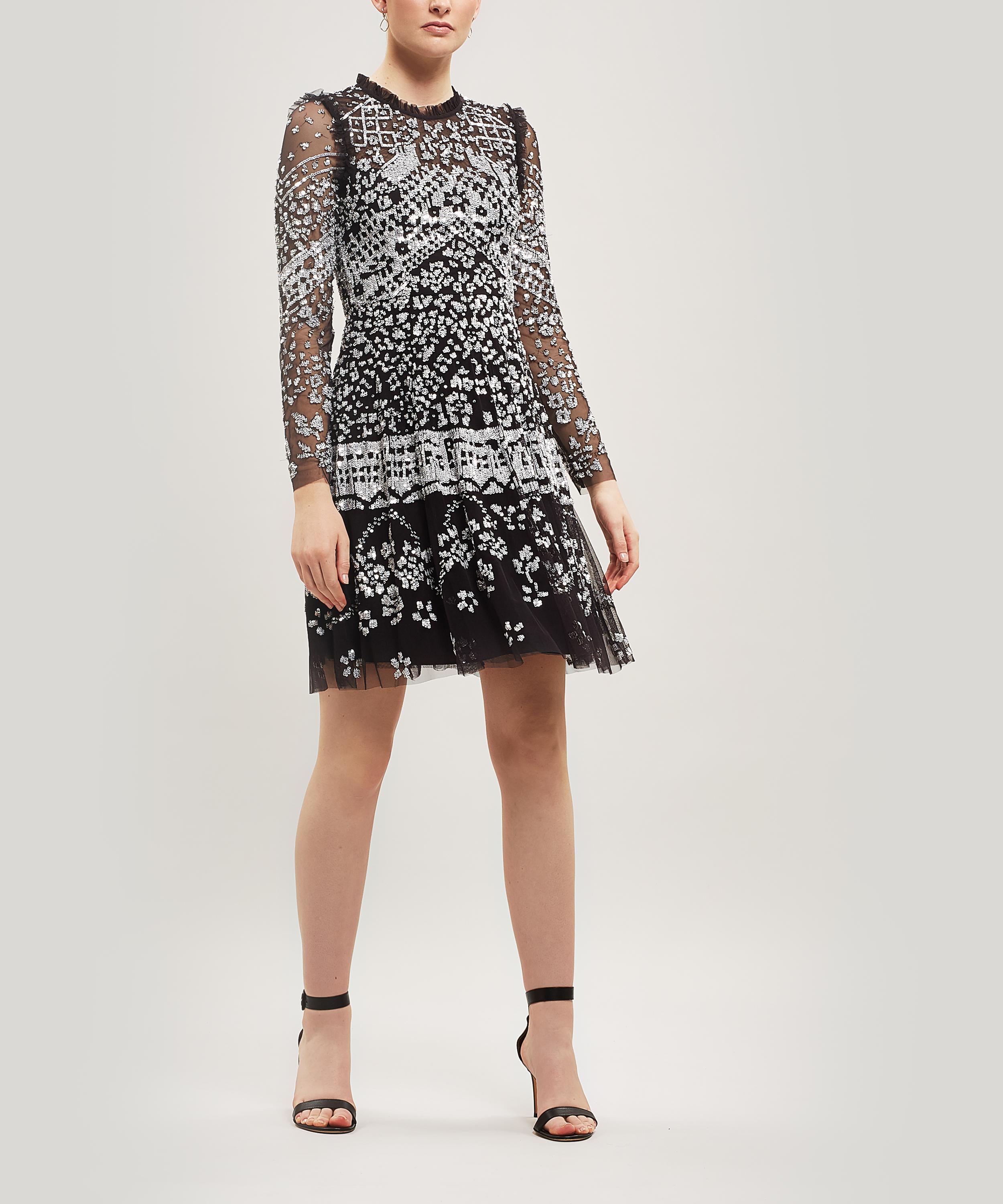 Charcoal Tulle Trimmed Sequin Embellished Georgette Mini Dress Needle Thread In 2020 Needle And Thread Dresses Mini Black Dress Dresses
