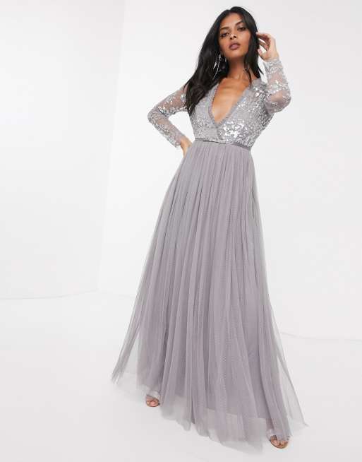 Needle Thread Sequin Bodice Maxi Dress In Grey Asos