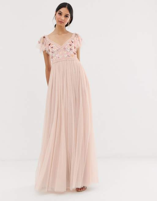 Needle Thread Embellished Tulle Maxi Dress With Cami Straps In Vintage Rose Asos Pink Dress On Sale Asos Fashion