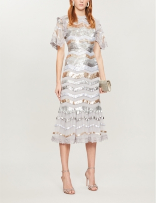 Needle And Thread Alaska Striped Sequin And Tulle Midi Dress Selfridges Com