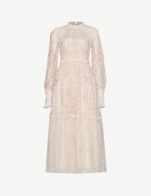 Needle And Thread Whitethorn Floral Embroidered Tulle Midi Dress Selfridges Com