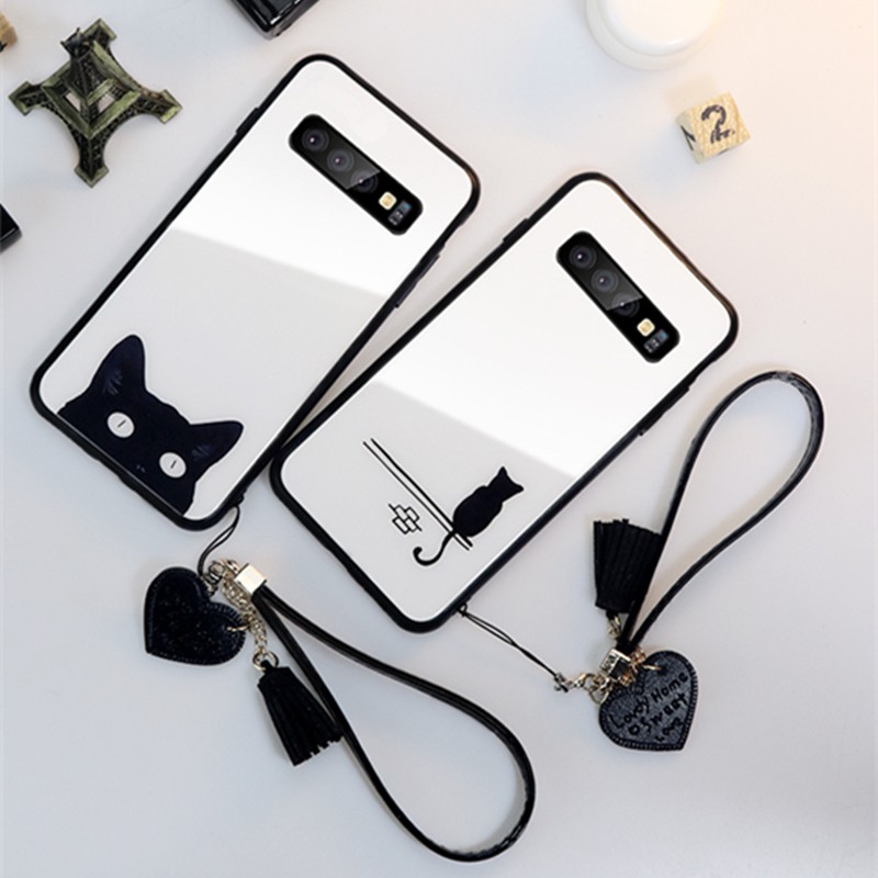 Case Strap Samsung Galaxy Note 10 Plus Case Glass Hard Cover Simple Cute Cat Lanyard Phone Casing Shopee Philippines