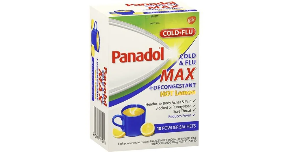 Panadol Cold Flu Max Decongestant Hot Lemon Powder Sachets Productreview Com Au