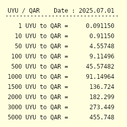 Uyu To Qar Exchange Rate Uruguayan Peso To Qatari Riyal Conversion